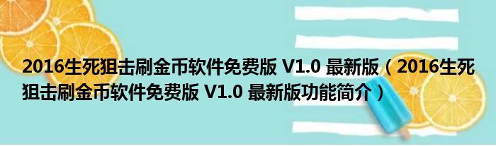 2016生死狙击刷金币软件免费版 V1.0 最新版(2016生死狙击刷金币软件免费版 V1.0 最新版功能简介)