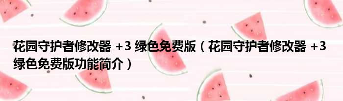 花园守护者修改器 +3 绿色免费版(花园守护者修改器 +3 绿色免费版功能简介)