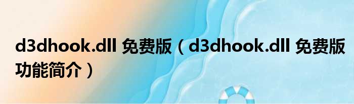 d3dhook.dll 免费版(d3dhook.dll 免费版功能简介)