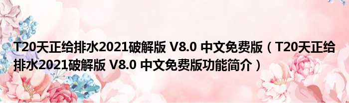 T20天正给排水2021破解版 V8.0 中文免费版(T20天正给排水2021破解版 V8.0 中文免费版功能简介)