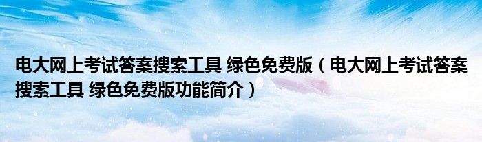 导读 大家好,关于电大网上考试答案搜索工具 绿色免费版,电大网上考试答案搜索工具 绿色免费版功能简介这个很多人还不知道,小勒来为大家解答以