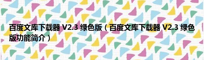 百度文库下载器 V2.3 绿色版(百度文库下载器 V2.3 绿色版功能简介)