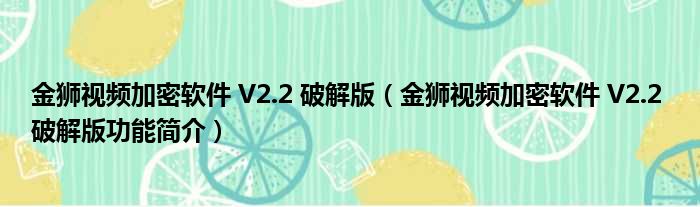 金狮视频加密软件 V2.2 破解版(金狮视频加密软件 V2.2 破解版功能简介)