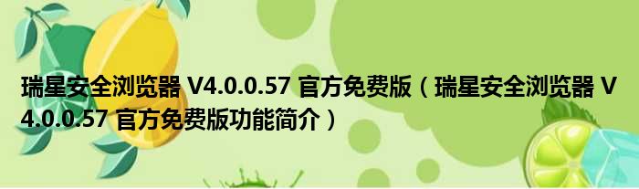 导读 大家好,关于瑞星安全浏览器 V4 0 0 57 官方免费版,瑞星安全浏览器 V4 0 0 57 官方免费版功能简介这个很多人还不知道,小勒来为大家解答