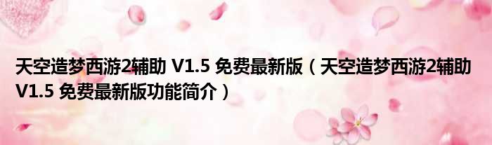 导读 大家好,关于天空造梦西游2辅助 V1 5 免费最新版,天空造梦西游2辅助 V1 5 免费最新版功能简介这个很多人还不知道,小勒来为大家解答以上