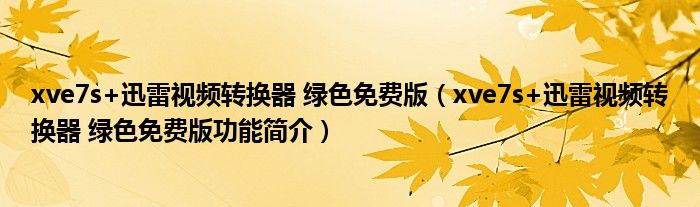 xve7s+迅雷视频转换器 绿色免费版(xve7s+迅雷视频转换器 绿色免费版功能简介)