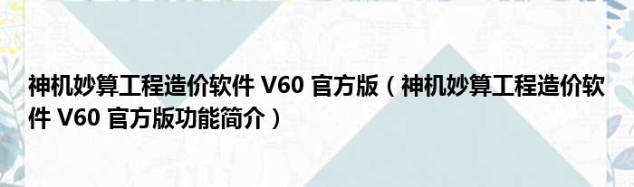 神机妙算工程造价软件 V60 官方版(神机妙算工程造价软件 V60 官方版功能简介)
