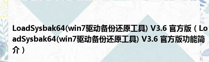 LoadSysbak64(win7驱动备份还原工具) V3.6 官方版(LoadSysbak64(win7驱动备份还原工具) V3.6 官方版功能简介)
