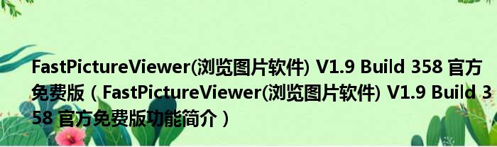 导读 大家好,关于FastPictureViewer(浏览图片软件) V1 9 Build 358 官方免费版,FastPictureViewer(浏览图片软件) V1 9 Build 358 官方