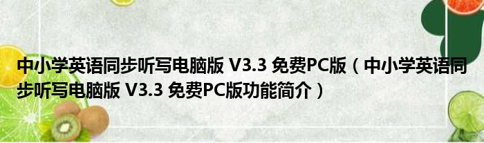 中小学英语同步听写电脑版 V3.3 免费PC版(中小学英语同步听写电脑版 V3.3 免费PC版功能简介)