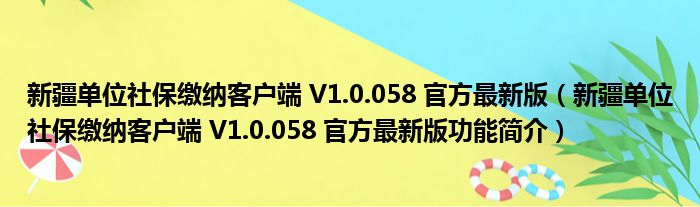 新疆单位社保缴纳客户端 V1.0.058 官方最新版(新疆单位社保缴纳客户端 V1.0.058 官方最新版功能简介)