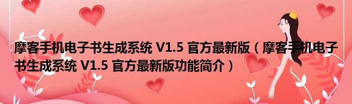 摩客手机电子书生成系统 V1.5 官方最新版(摩客手机电子书生成系统 V1.5 官方最新版功能简介)