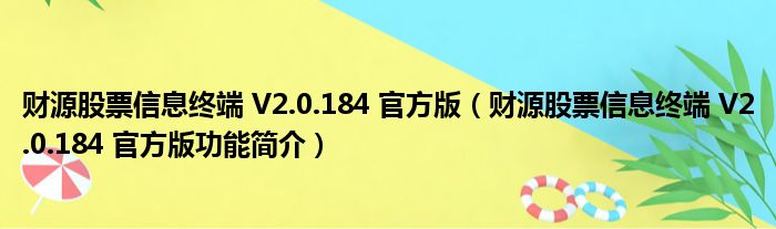 财源股票信息终端 V2.0.184 官方版(财源股票信息终端 V2.0.184 官方版功能简介)