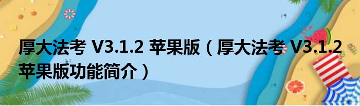 导读 大家好,关于厚大法考 V3 1 2 苹果版,厚大法考 V3 1 2 苹果版功能简介这个很多人还不知道,小勒来为大家解答以上的问题,现在让我们一起