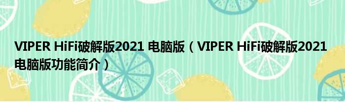 VIPER HiFi破解版2021 电脑版(VIPER HiFi破解版2021 电脑版功能简介)