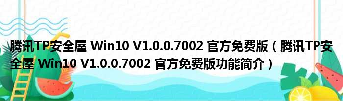 腾讯TP安全屋 Win10 V1.0.0.7002 官方免费版(腾讯TP安全屋 Win10 V1.0.0.7002 官方免费版功能简介)