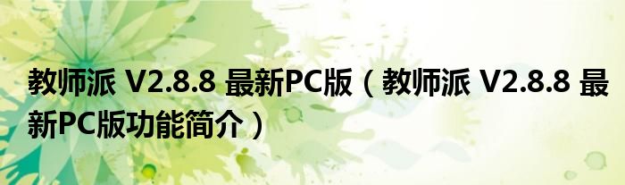 导读 大家好,关于教师派 V2 8 8 最新PC版,教师派 V2 8 8 最新PC版功能简介这个很多人还不知道,小勒来为大家解答以上的问题,现在让我们一起