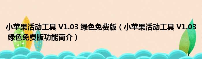 小苹果活动工具 V1.03 绿色免费版(小苹果活动工具 V1.03 绿色免费版功能简介)