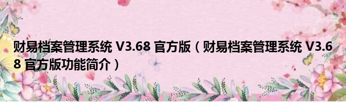 财易档案管理系统 V3.68 官方版(财易档案管理系统 V3.68 官方版功能简介)