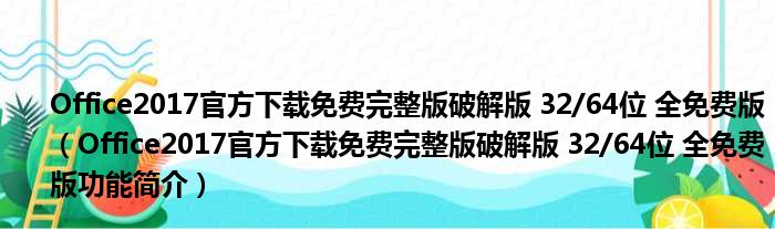 Office2017官方下载免费完整版破解版 32/64位 全免费版(Office2017官方下载免费完整版破解版 32/64位 全免费版功能简介)