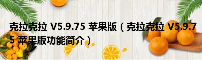 克拉克拉 V5.9.75 苹果版(克拉克拉 V5.9.75 苹果版功能简介)