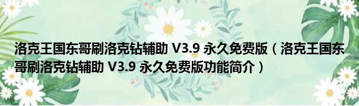 洛克王国东哥刷洛克钻辅助 V3.9 永久免费版(洛克王国东哥刷洛克钻辅助 V3.9 永久免费版功能简介)