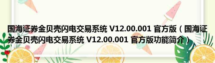 国海证券金贝壳闪电交易系统 V12.00.001 官方版(国海证券金贝壳闪电交易系统 V12.00.001 官方版功能简介)