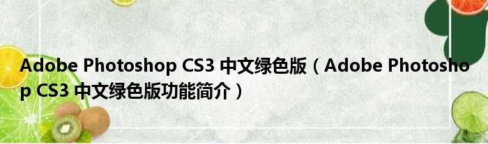 Adobe Photoshop CS3 中文绿色版(Adobe Photoshop CS3 中文绿色版功能简介)