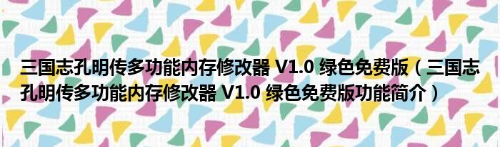 三国志孔明传多功能内存修改器 V1.0 绿色免费版(三国志孔明传多功能内存修改器 V1.0 绿色免费版功能简介)