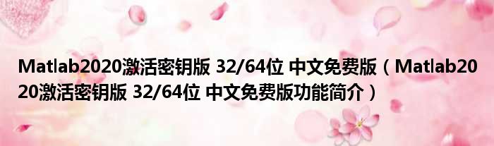 Matlab2020激活密钥版 32/64位 中文免费版(Matlab2020激活密钥版 32/64位 中文免费版功能简介)