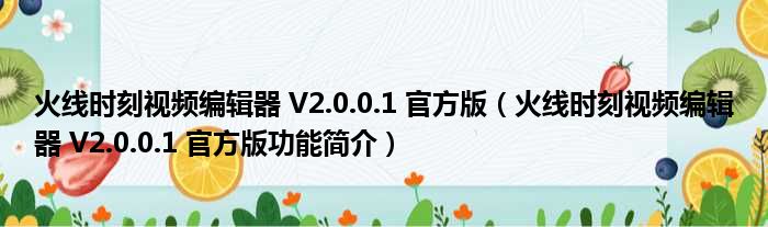 火线时刻视频编辑器 V2.0.0.1 官方版(火线时刻视频编辑器 V2.0.0.1 官方版功能简介)