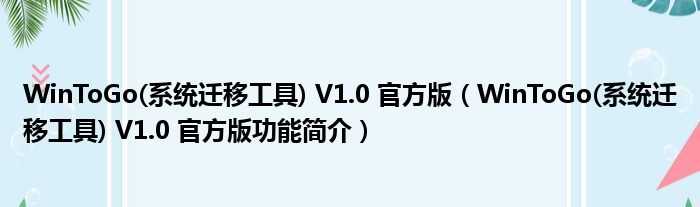 WinToGo(系统迁移工具) V1.0 官方版(WinToGo(系统迁移工具) V1.0 官方版功能简介)
