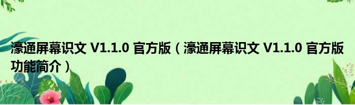 濠通屏幕识文 V1.1.0 官方版(濠通屏幕识文 V1.1.0 官方版功能简介)