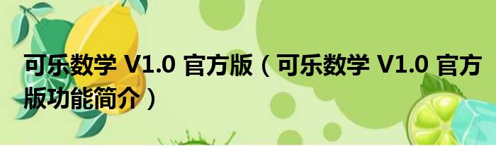 可乐数学 V1.0 官方版(可乐数学 V1.0 官方版功能简介)