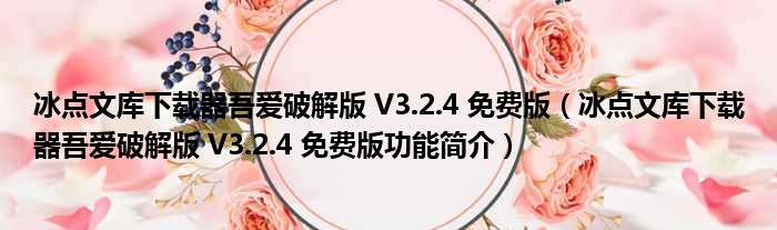 导读 大家好,关于冰点文库下载器吾爱破解版 V3 2 4 免费版,冰点文库下载器吾爱破解版 V3 2 4 免费版功能简介这个很多人还不知道,小勒来为大