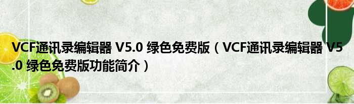 VCF通讯录编辑器 V5.0 绿色免费版(VCF通讯录编辑器 V5.0 绿色免费版功能简介)