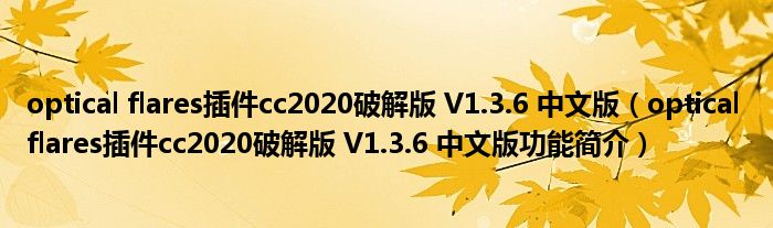 optical flares插件cc2020破解版 V1.3.6 中文版(optical flares插件cc2020破解版 V1.3.6 中文版功能简介)