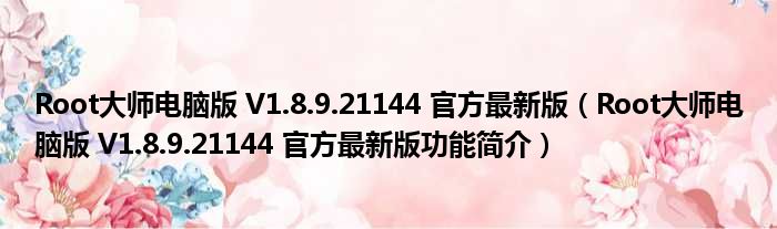 Root大师电脑版 V1.8.9.21144 官方最新版(Root大师电脑版 V1.8.9.21144 官方最新版功能简介)