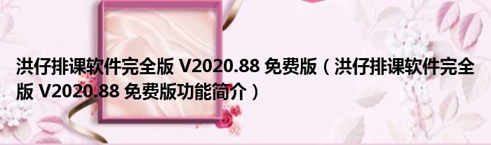 洪仔排课软件完全版 V2020.88 免费版(洪仔排课软件完全版 V2020.88 免费版功能简介)