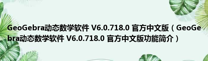 GeoGebra动态数学软件 V6.0.718.0 官方中文版(GeoGebra动态数学软件 V6.0.718.0 官方中文版功能简介)