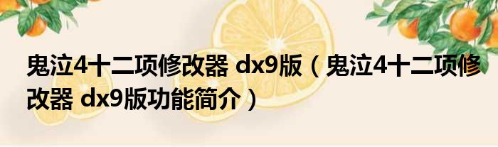 鬼泣4十二项修改器 dx9版(鬼泣4十二项修改器 dx9版功能简介)