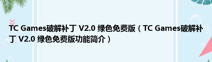 TC Games破解补丁 V2.0 绿色免费版(TC Games破解补丁 V2.0 绿色免费版功能简介)