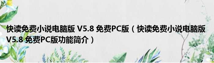 快读免费小说电脑版 V5.8 免费PC版(快读免费小说电脑版 V5.8 免费PC版功能简介)