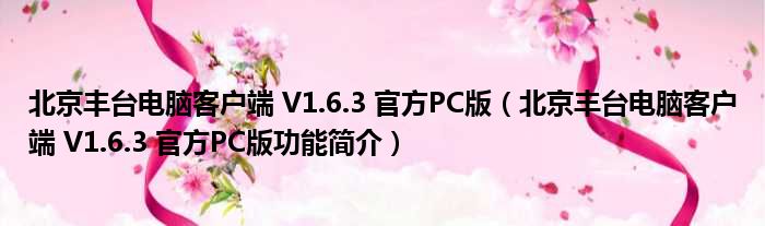 北京丰台电脑客户端 V1.6.3 官方PC版(北京丰台电脑客户端 V1.6.3 官方PC版功能简介)