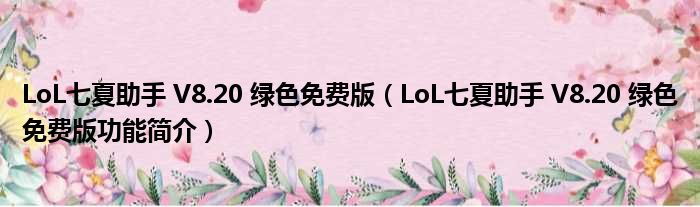 大家好,关于LoL七夏助手 V8.20 绿色免费版,LoL七夏助手 V8.20 绿色免费版功能简介这个很多人还不知道,小勒来为大家解答以上的问题,现在让我们一起来看看吧!