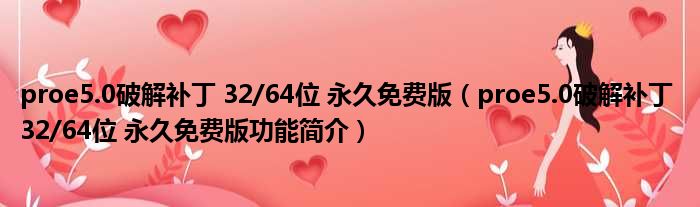 导读 大家好,关于proe5 0破解补丁 32 64位 永久免费版,proe5 0破解补丁 32 64位 永久免费版功能简介这个很多人还不知道,小勒来为大家解答以