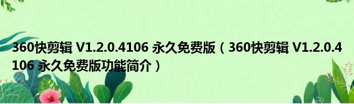 360快剪辑 V1.2.0.4106 永久免费版(360快剪辑 V1.2.0.4106 永久免费版功能简介)