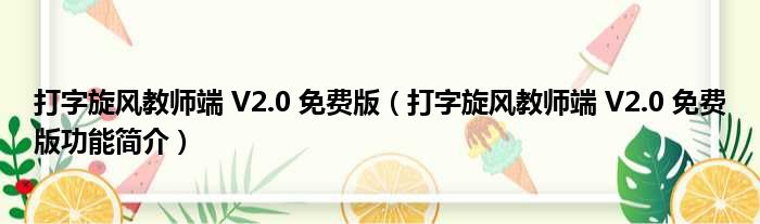打字旋风教师端 V2.0 免费版(打字旋风教师端 V2.0 免费版功能简介)