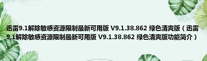 迅雷9.1解除敏感资源限制最新可用版 V9.1.38.862 绿色清爽版(迅雷9.1解除敏感资源限制最新可用版 V9.1.38.862 绿色清爽版功能简介)