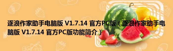 逐浪作家助手电脑版 V1.7.14 官方PC版(逐浪作家助手电脑版 V1.7.14 官方PC版功能简介)